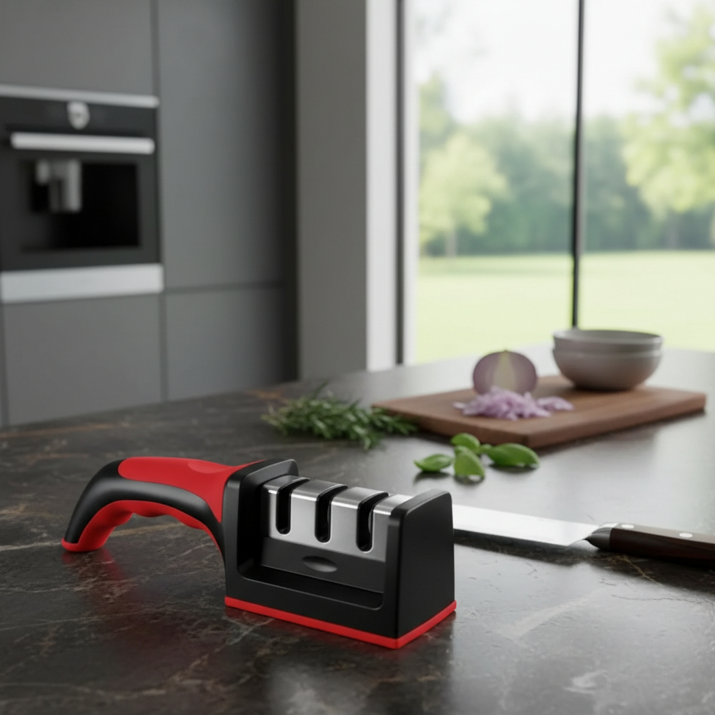 -Mantené tus cuchillos siempre afilados y listos para usar con este afilador manual 3 en 1, práctico, resistente y fácil de usar. Ideal para el hogar, cocinas profesionales o amantes de la cocina que buscan resultados rápidos y seguros.