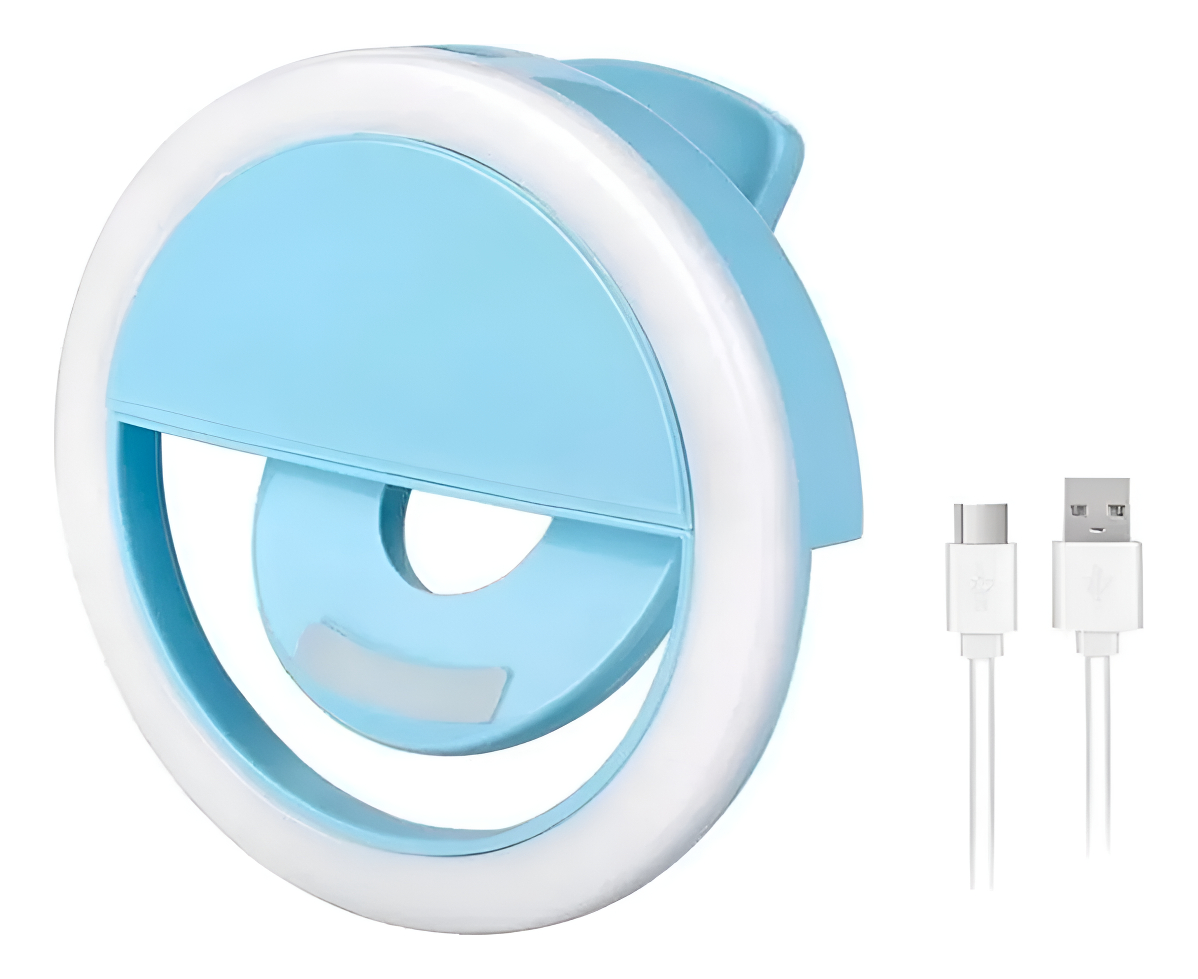 OPCION 2 (1501): Mini Aro De Luz Led Anillo Recargable Color Celeste
