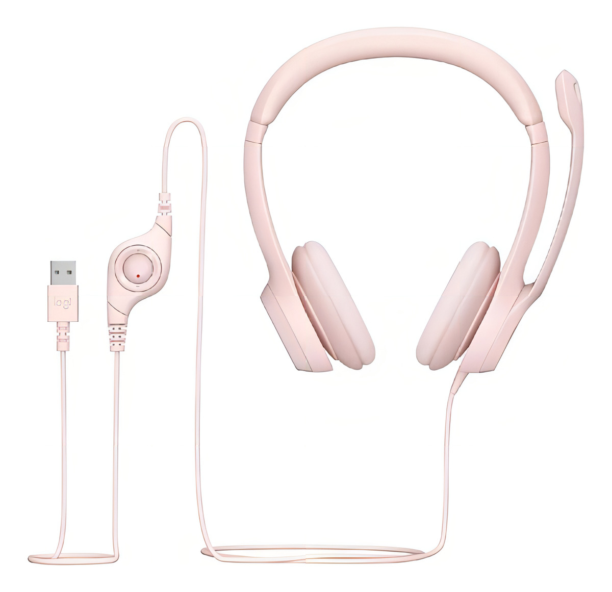 Audifono Logitech H390 Usb C/ Cancelación De Ruido Color Rosa