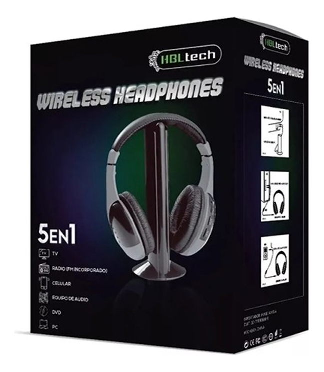 Auricular Inalambrico Con Mic Tv Pc Mp3 Base Conexion Rca Negro