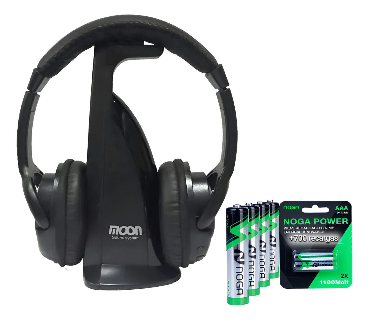 Auricular Inalámbrico Moon Ma102 Tv Pc Radio Celular Con Base + 4 Pilas recargables (1610 x 4)