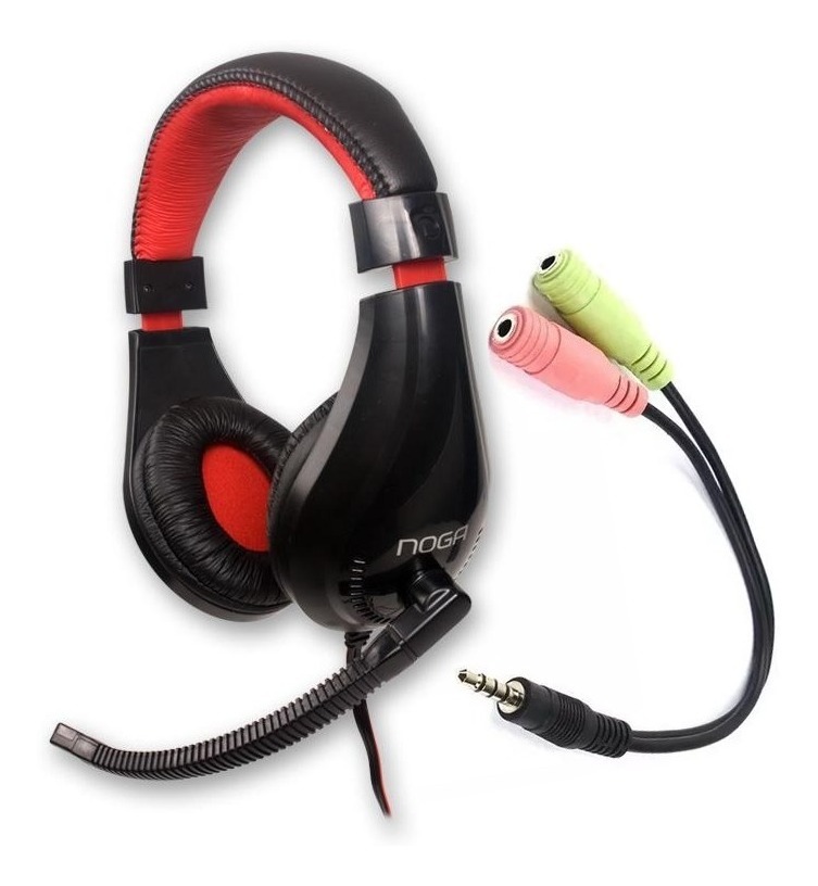 Auricular Noganet Gamer Para Ps4 + Pc Mic Regulable Negro/rojo