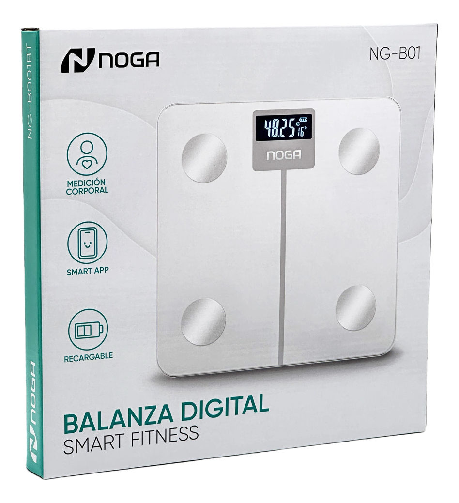 Balanza Digital Smart Fitness Med Corp App Recargable Noga Blanco
