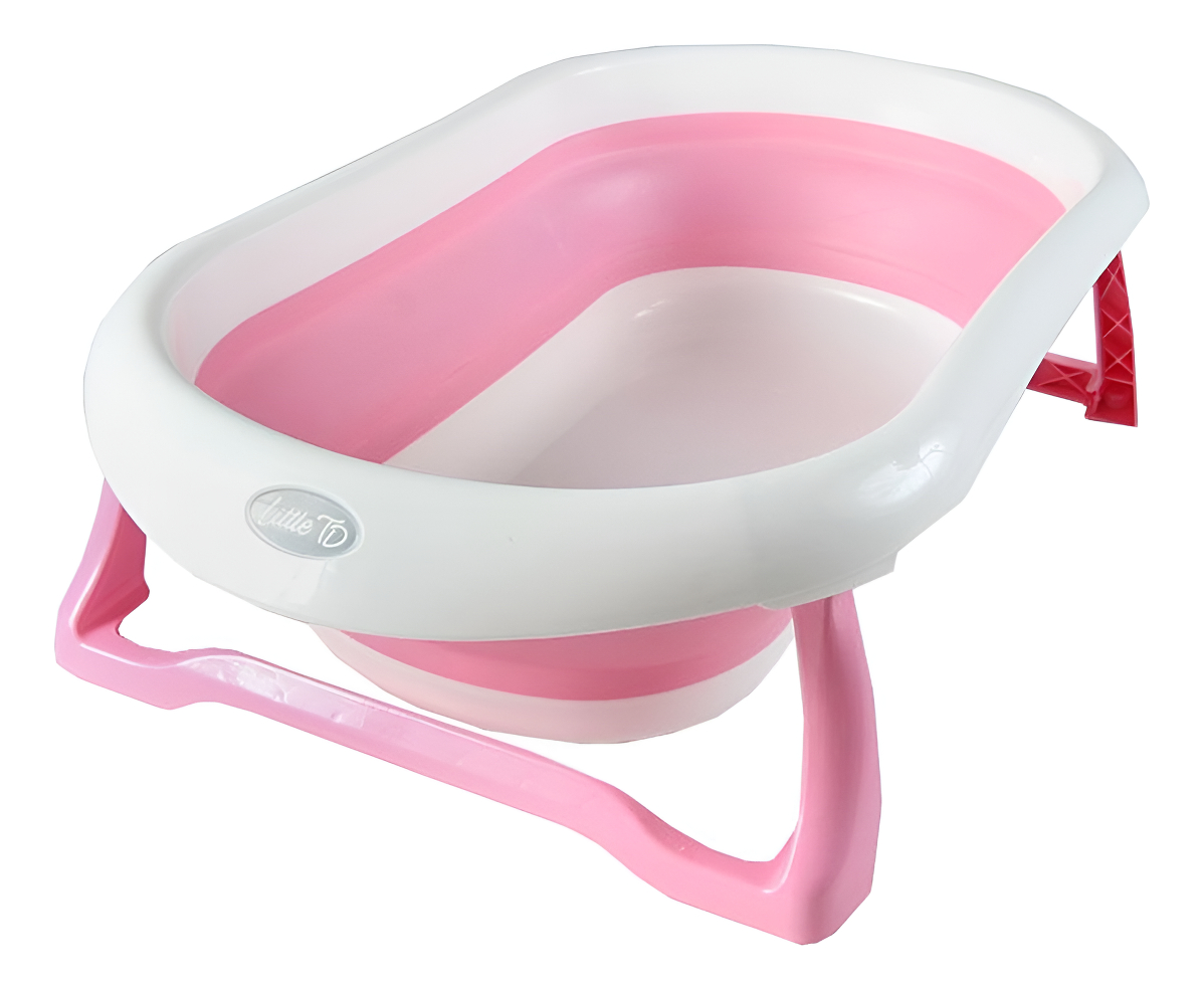 Bañera De Bebe Plegable Ultra Compacta 24 Litros Con Tapon Blanco Y Rosa Lisa