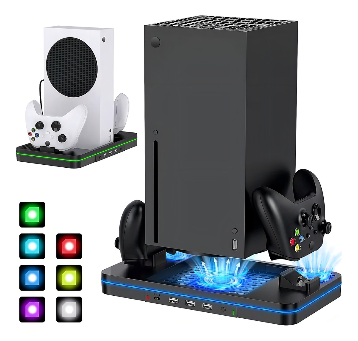 Base Cargadora Ventilada Dynacom Para Xbox Series X/s Con 2 Puertos Usb Y Baterías