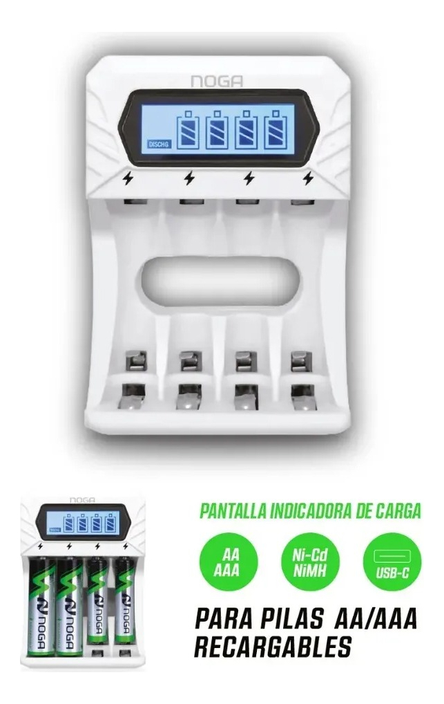 Cargador De Pilas Recargables Noga Ng-6000c Usb-C Aa Y Aaa