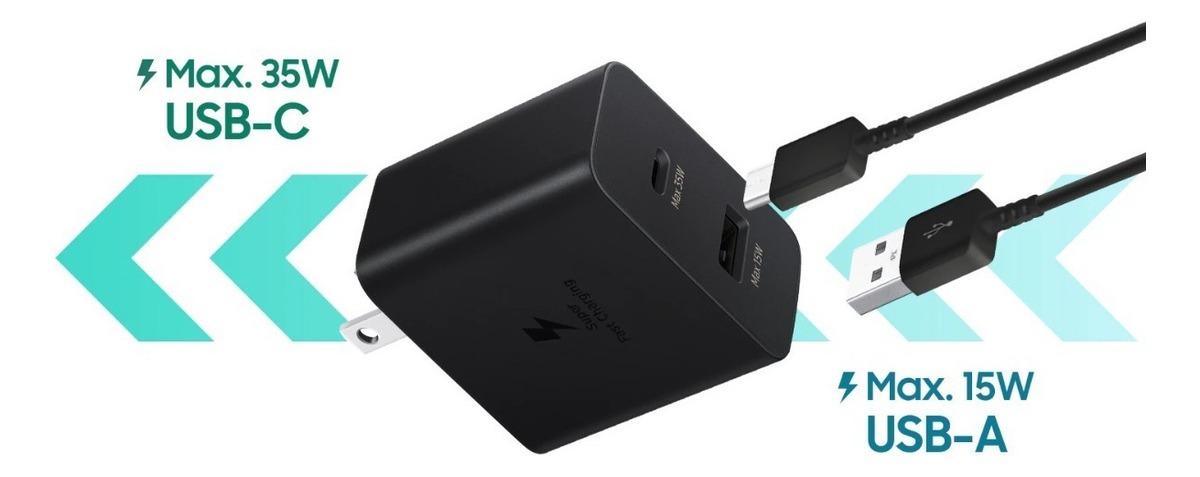 Cargador Samsung 35w Pd Power Adapter Duo Usb-c, Usb-a Color Negro
