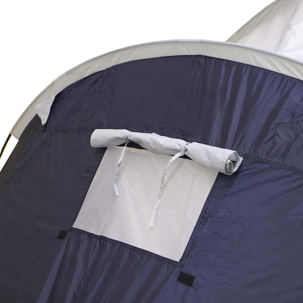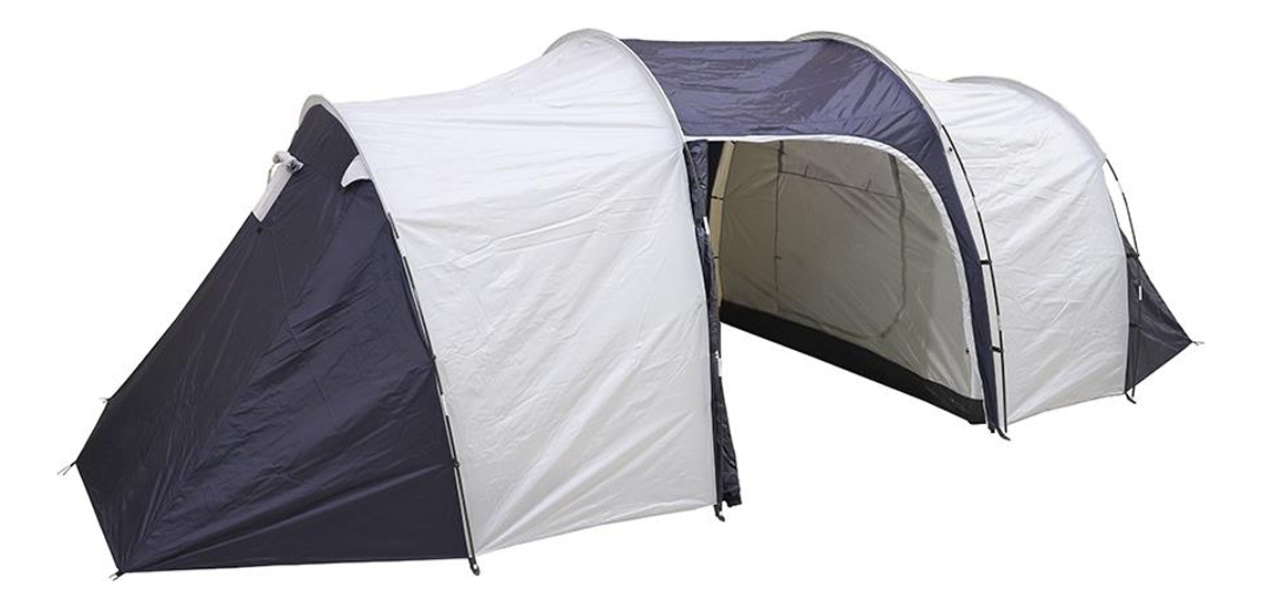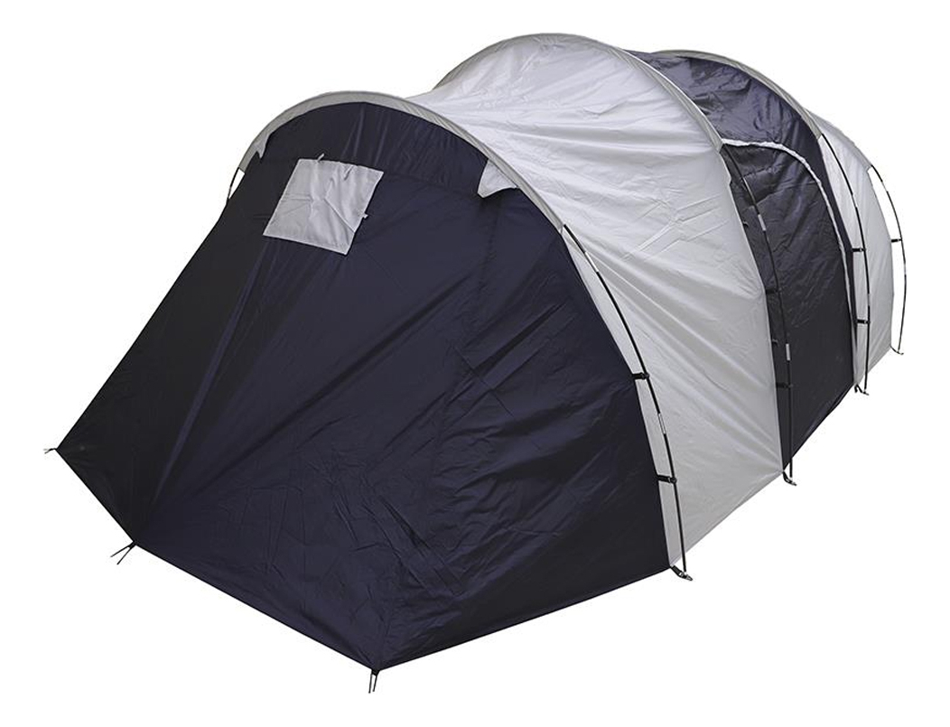 Carpa Tunel Camping 8 Pers. Doble Dormitorio Poliéster Azul Y Plateado