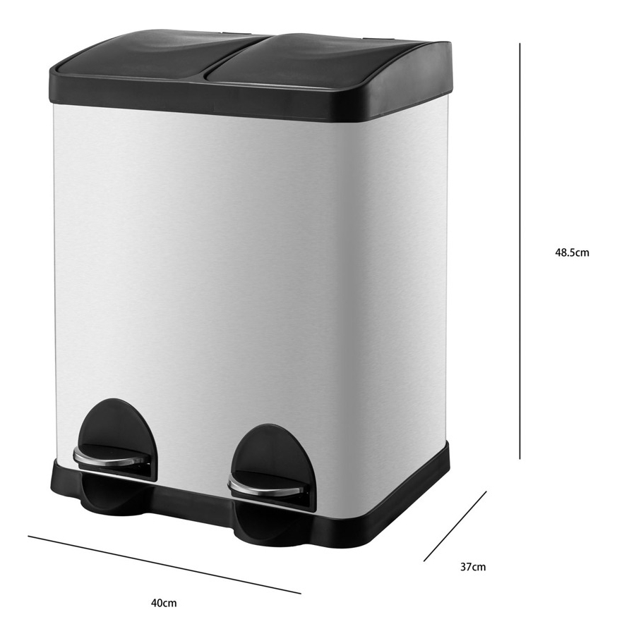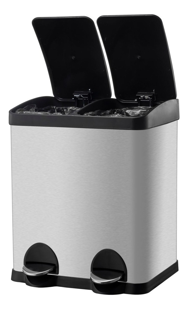 Cesto De Basura Doble Pedal 30l Acero Inoxidable Durable