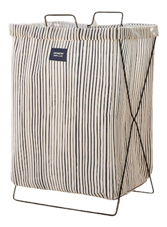 Cesto Ropa Canasto Laundry Tela Estructura De Metal Premium Color Blanco Con Azul Blanco Con Azul