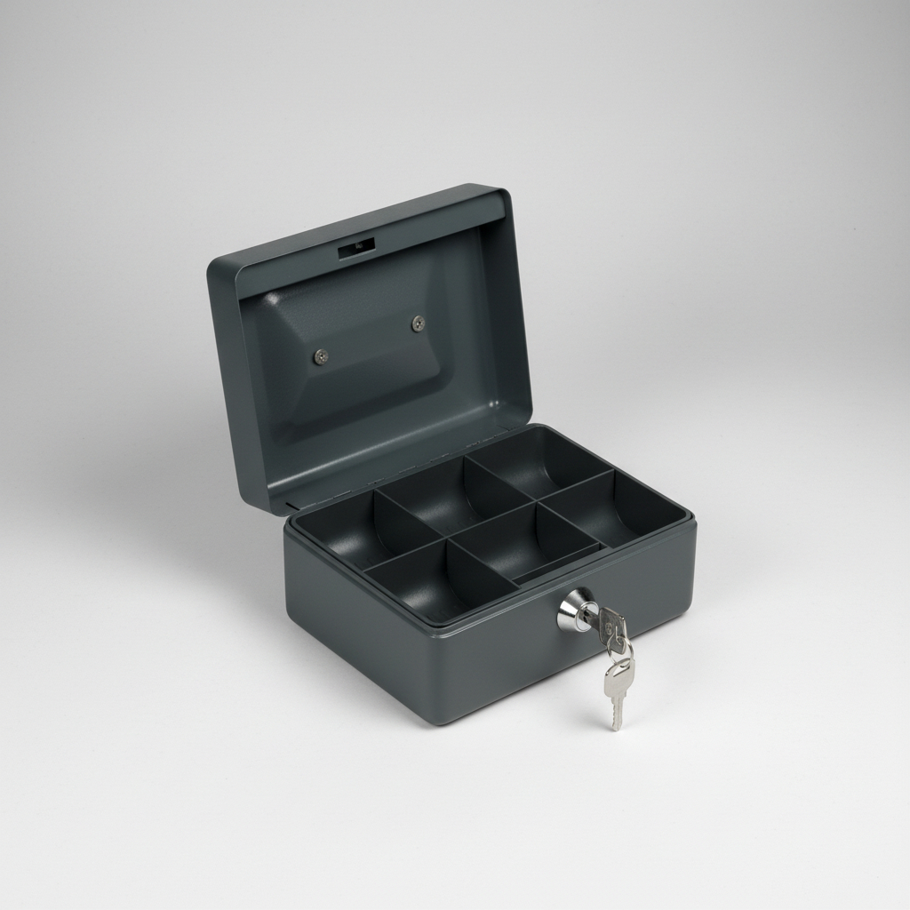 -Protegé tu dinero y objetos importantes con el Cofre Porta Valores, ideal para el hogar, la oficina o comercios. Su diseño compacto y resistente permite guardarlo fácilmente en cajones, estantes o armarios, manteniendo tus pertenencias siempre seguras.