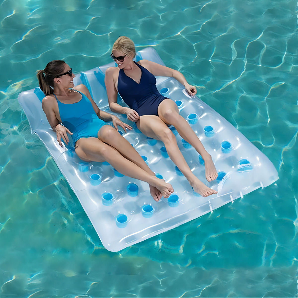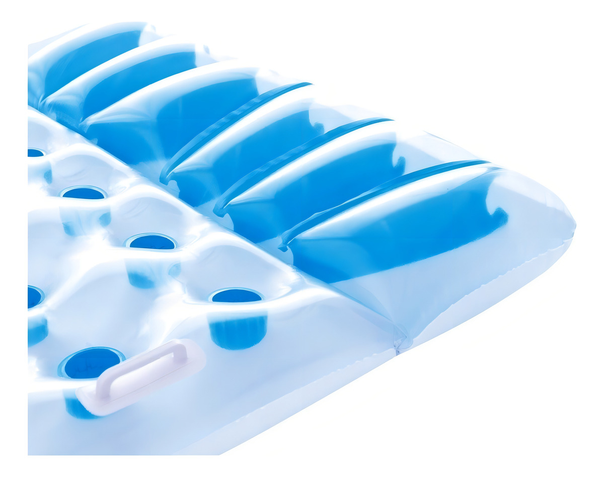 Esta colchoneta inflable doble de color Summer es ideal para disfrutar al aire libre. Con una almohada integrada, proporciona un alto nivel de comodidad. Su tamaño de 193×142 cm permite que hasta dos personas puedan tumbarse en ella, soportando un peso de hasta 180 kg. Está fabricada con vinilo resistente probado, lo que garantiza su durabilidad. Además, cuenta con asas de gran resistencia que facilitan su uso.