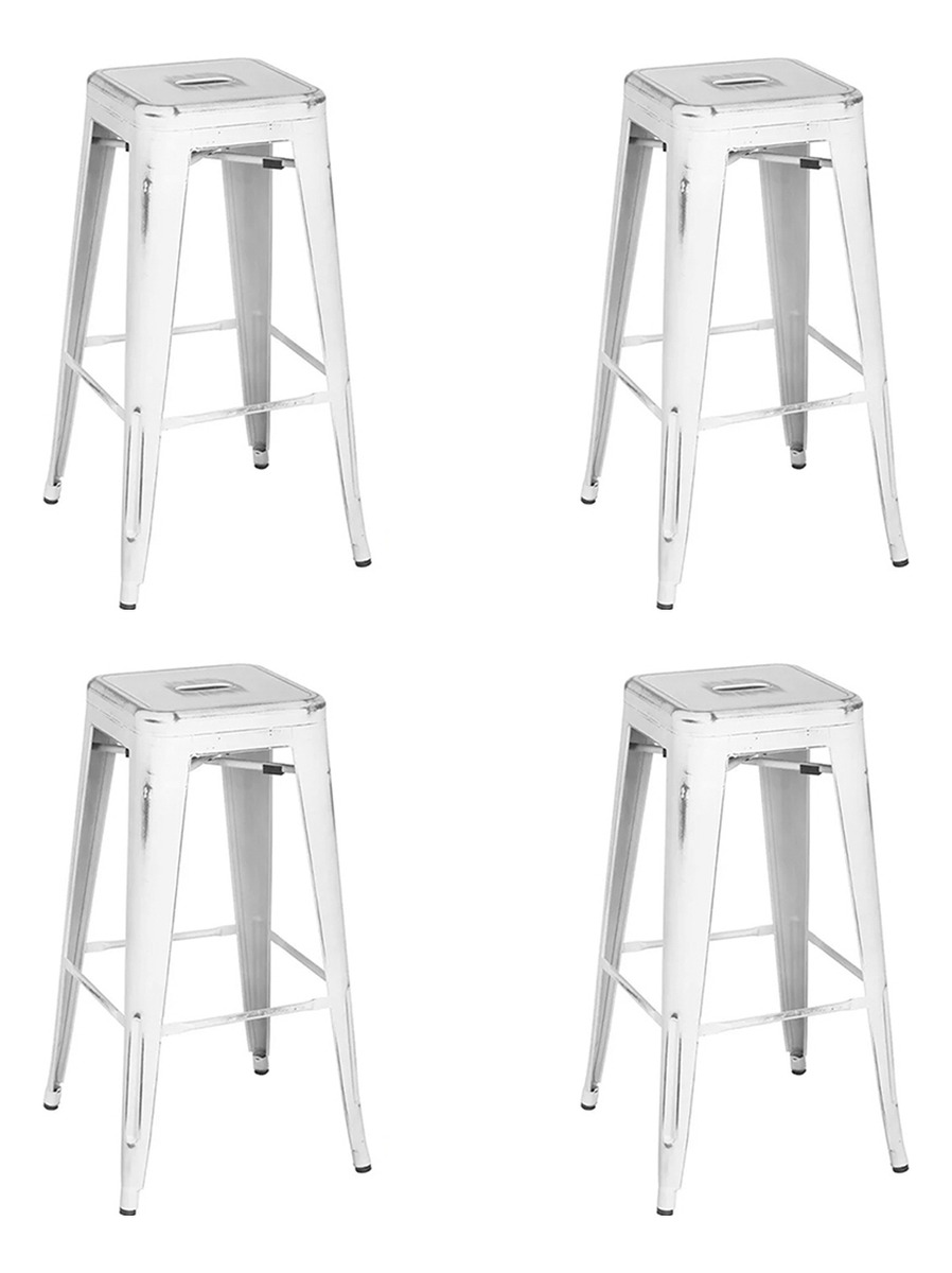 Set X4 Taburete Banqueta Alta Tolix Vintage De Cocina 76cm Apilable:
