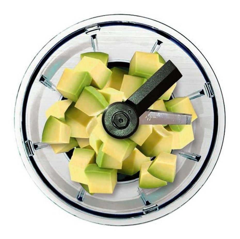 – Su vaso transparente de 500 ml permite controlar fácilmente el tamaño del corte