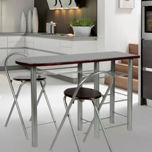 Desayunador 2 Taburete Mesa Estantes Set Banqueta Silla Bar Chocolate