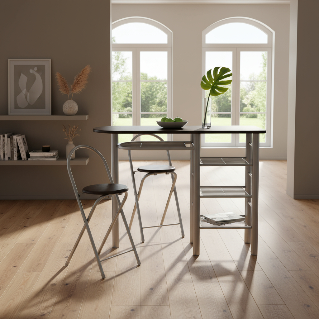 Desayunador 2 Taburete Mesa Estantes Set Banqueta Silla Bar