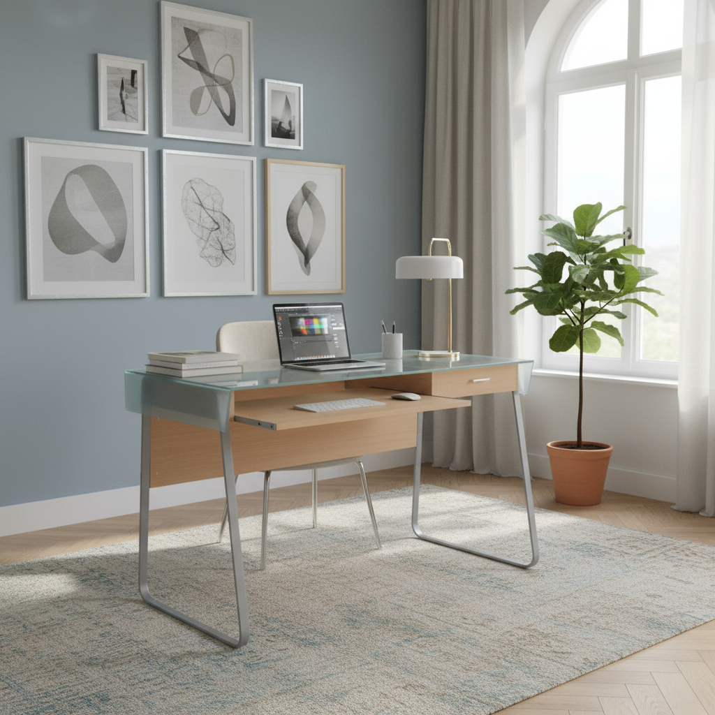 Escritorio Diseño Flores Moderno Vidrio Metal Ramos Mejia Transparente