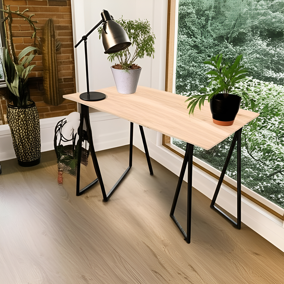 Escritorio Multifuncion Metal Madera Estilo Industrial Ramos Color Natural Color Secundario Negro