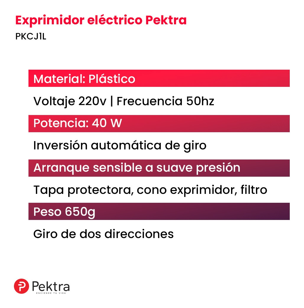 Exprimidor Electrico Jugo Citricos Juguera Pektra 1 Litro Color Rojo Frecuencia 50