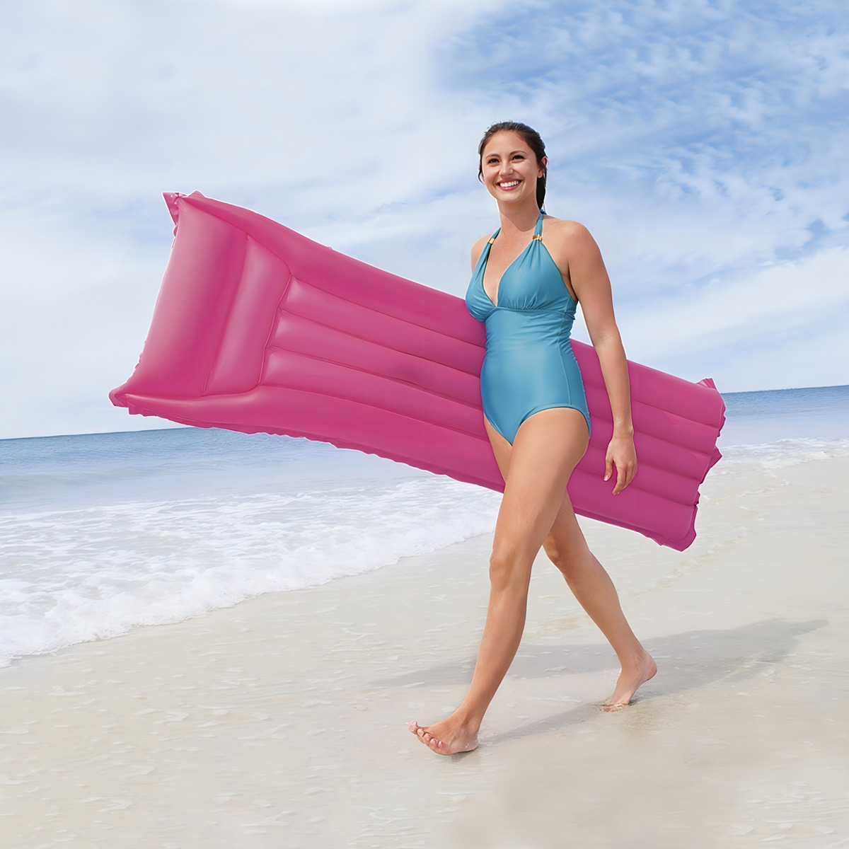 Disfruta de un descanso bajo el sol con esta Cama Inflable de Colores Lisos con Almohada Integrada.