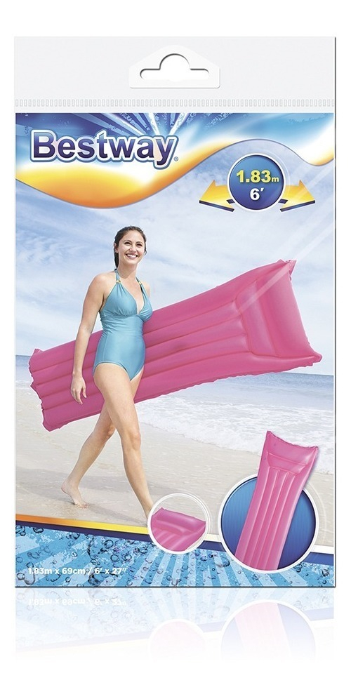 Esta cama inflable es perfecta para relajarse bajo el sol, gracias a su almohada integrada en el diseño. Está fabricada con Plástico PVC de alta resistencia, ideal para usar en la piscina, playa o río. Su acabado mate es agradable a la vista.