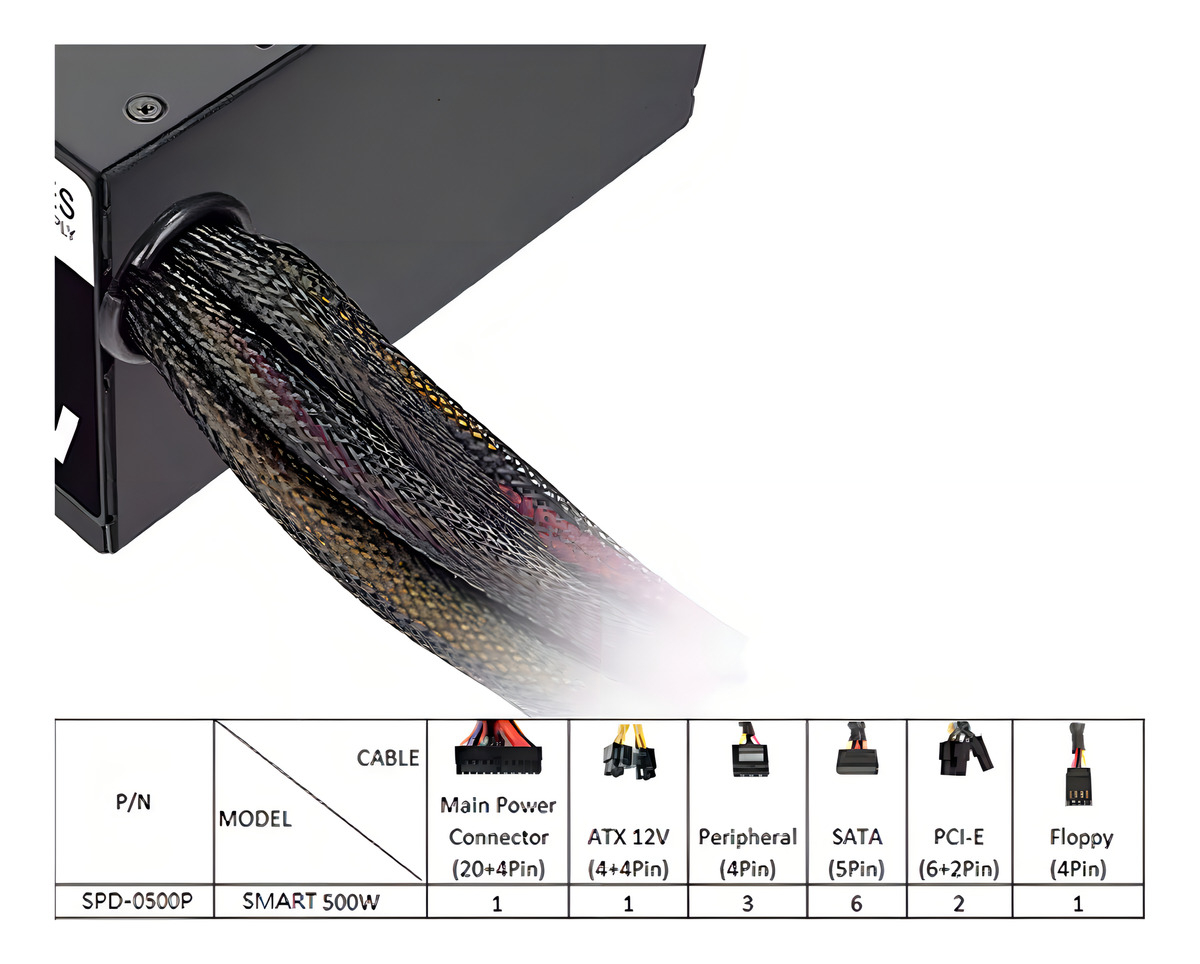 1 Floppy ,2 PCI-E ,3 Molex ,6 HDD ,6 SATA |