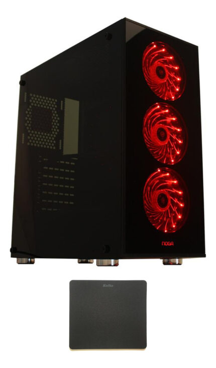 Este Gabinete Gamer de la marca Noga, modelo ng-8609, cuenta con 3 Coolers con LEDS rojos de 12 cm. Tiene un frente de vidrio tonalizado y un lateral izquierdo de acrílico tonalizado. Además, posee una rejilla de ventilación magnética removible y la opción para agregar 4 Coolers más.