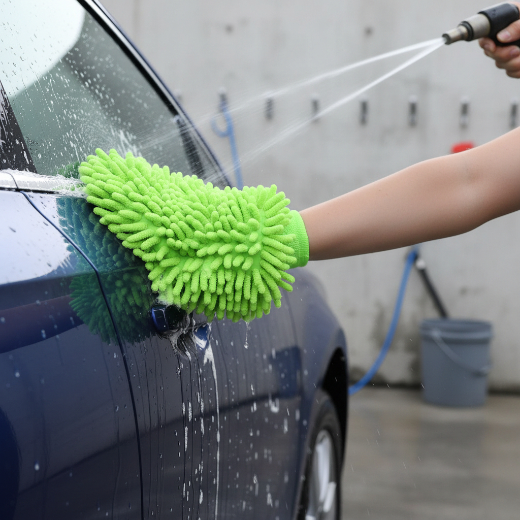 -Deja tu auto impecable con este guante de microfibra doble cara, ideal para un lavado seguro y eficiente.