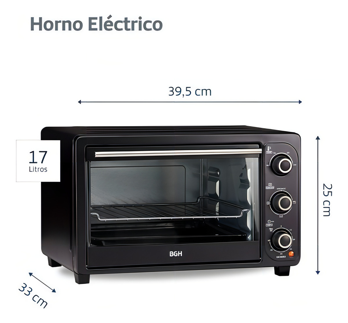 Hornito Eléctrico Bgh Bhe17m20n 16l Color Negro