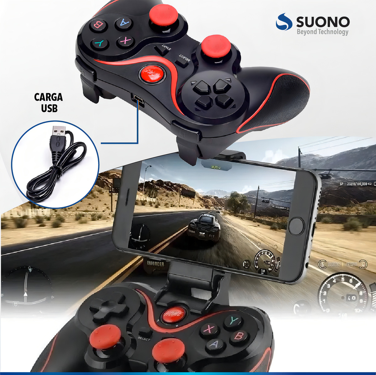 Joystick Suono Mando De Juego Gamepad Inalambrico Bt Wireles Color Negro
