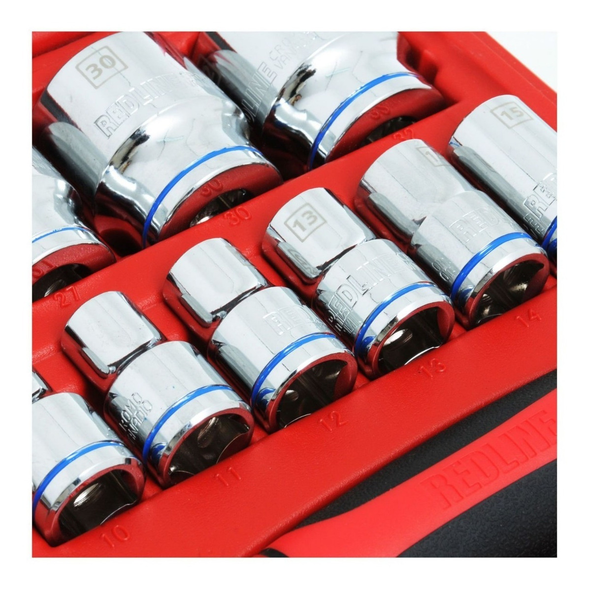 – 15 dados: 10 mm, 11 mm, 12 mm, 13 mm, 14 mm, 15 mm, 16 mm, 17 mm, 18 mm, 19 mm, 22 mm, 24 mm, 27 mm, 30 mm, 32 mm