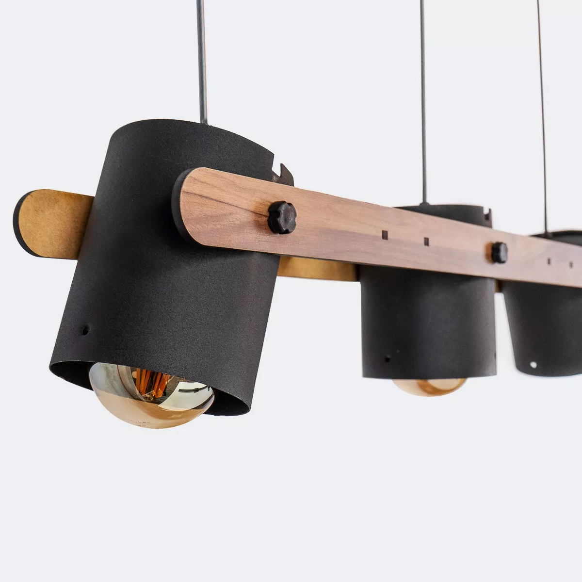 Lampara De Techo 3 Luces Estilo Nordico 60w Metal + Madera Negro