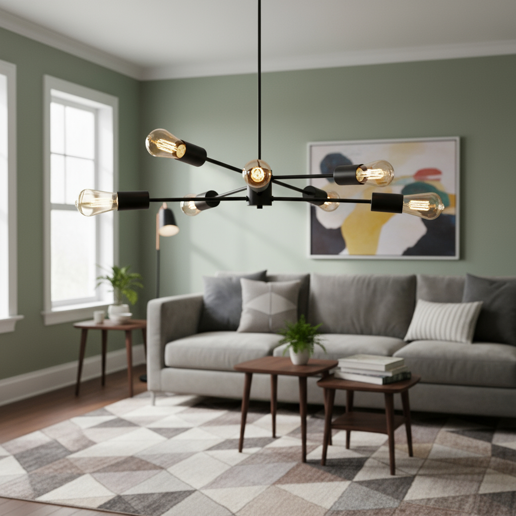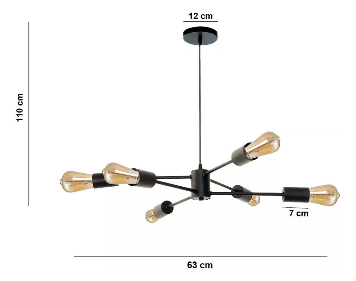 Lámpara Colgante De Techo Con 6 Luces E27 En Metal Negro