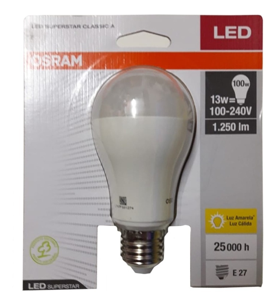 Lampara Led 13w Osram Luz Calida 1300 Lm Rosca E27 25000 Hs Amarillo