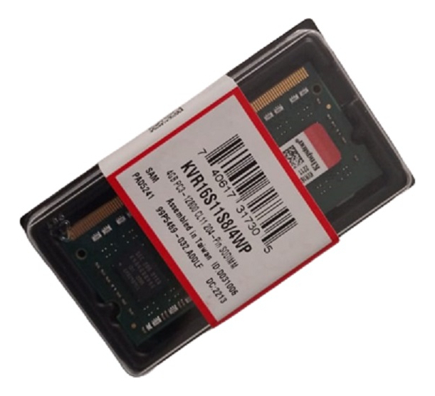 Memoria Sdram Kingston 4 Gb Ddr3l Kvr16s11s8/4wp 1600 Mhz Cl11 1.5v Sodimm Para Notebook Laptop