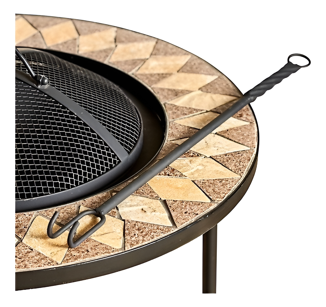 Mesa Exterior Mosaico Metal Cerámica Cemento Homy Mandala Brasero 60cm Redonda Multicolor
