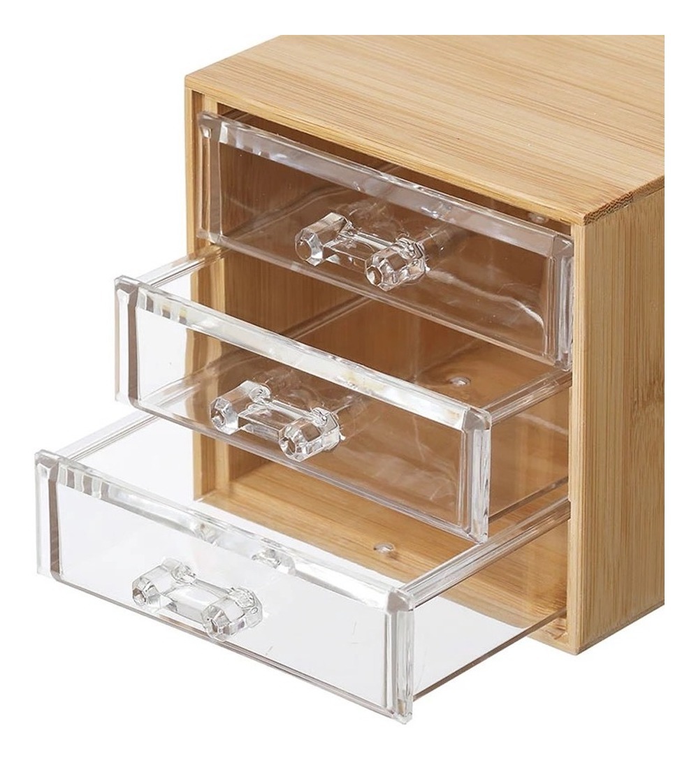 Mini Organizador Bambu 3 Cajones Acrilico Manija Resistente