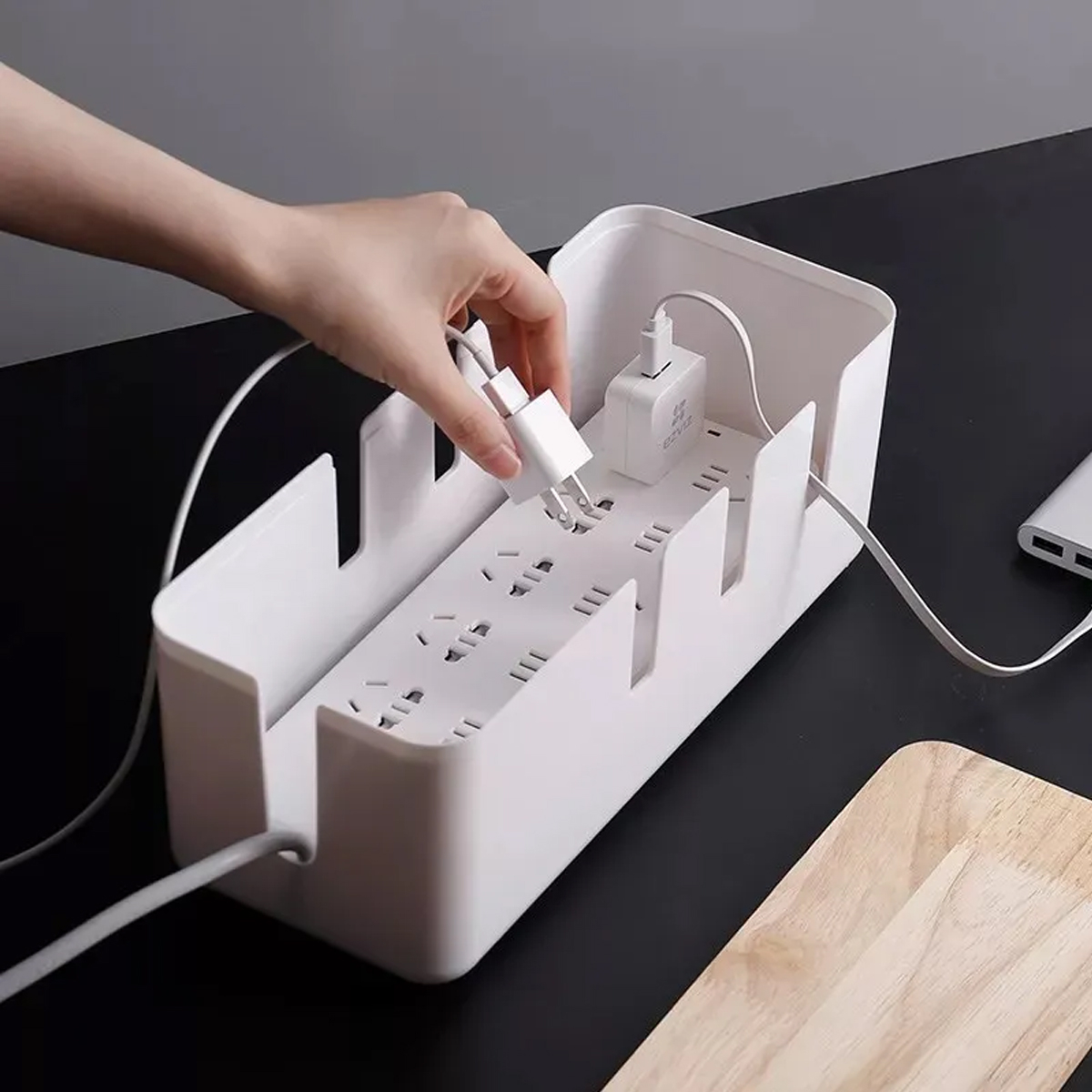Mini Organizador De Cables Plastico + Tapa Madera Bambu