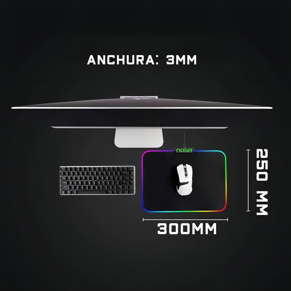 Mouse Pad Gamer Luces Led Rgb Retroiluminado Noga Horizon S Color Negro