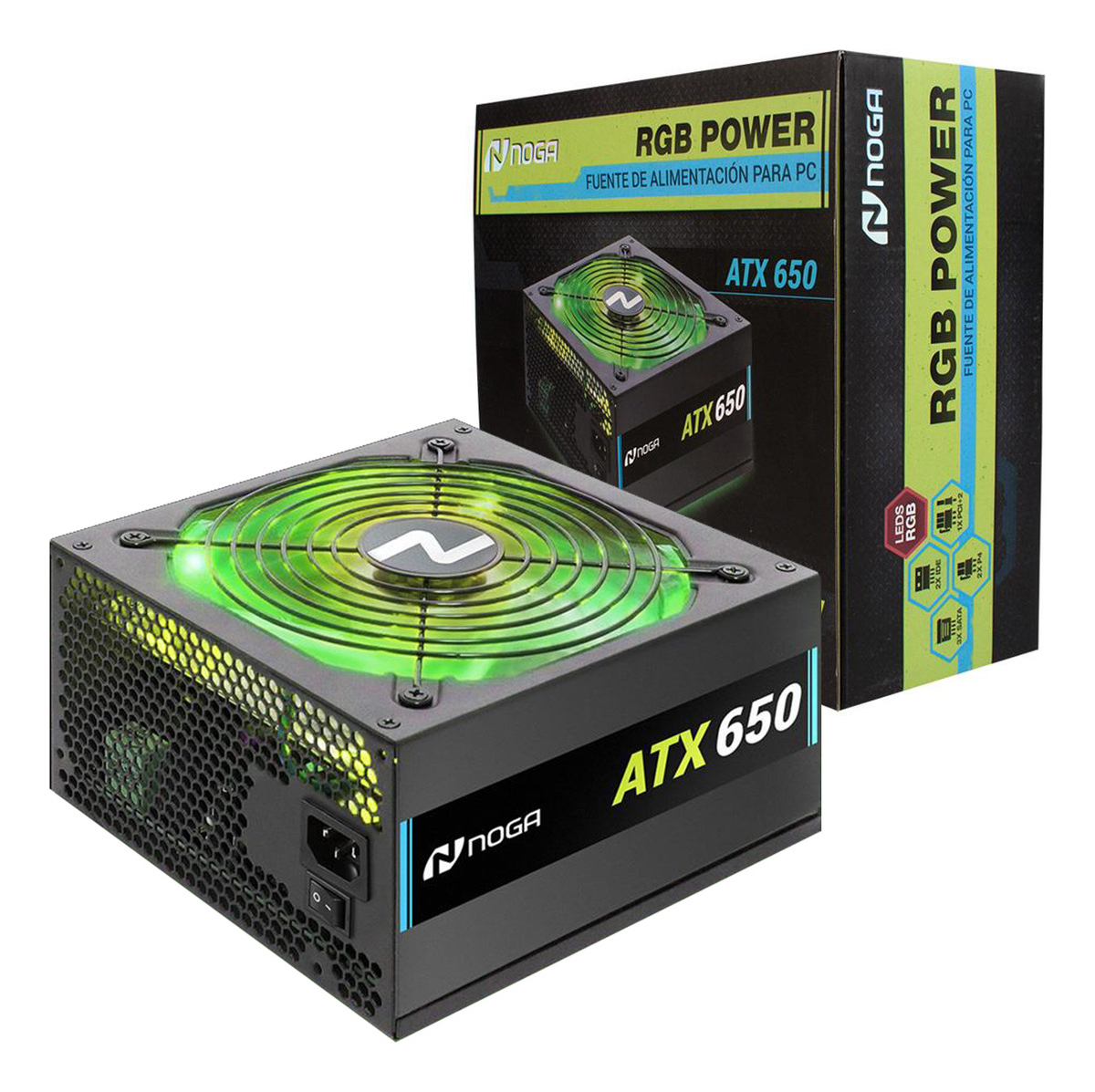 La Fuente de alimentación para PC Noga RGB Power ATX-650 RGB de 650W en color negro es la solución perfecta para mantener tu computadora de escritorio funcionando de manera eficiente y segura.