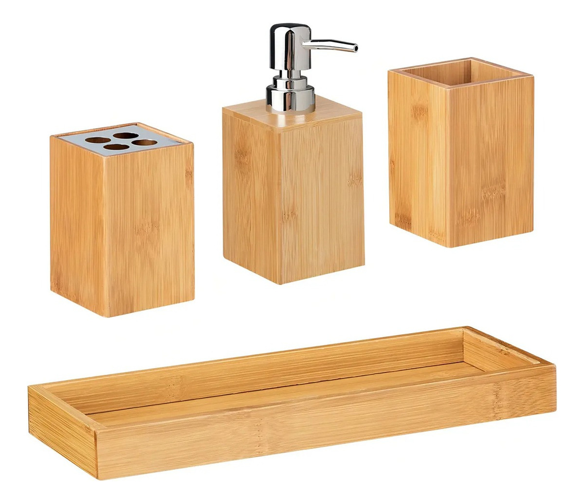 Organizador De Baño 4 Accesorios Multifuncion Bambu