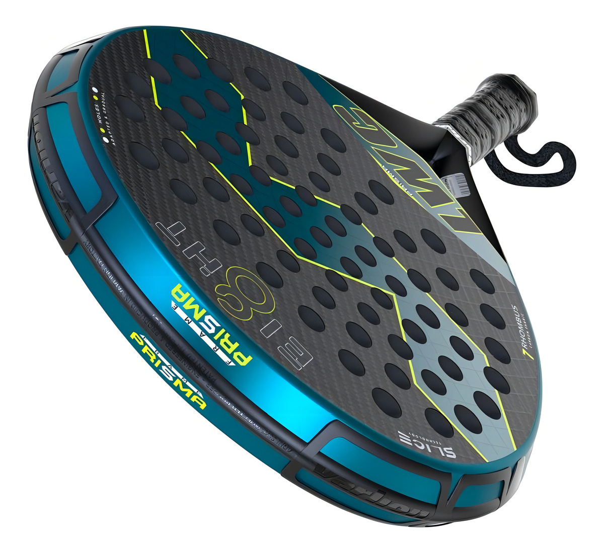 Incluye de serie el protector Prisma, el cual está diseñado y producido a través de un molde de inyección en PTU de baja dureza para absorber golpes y rozaduras. Este protector se fija sobre el marco de la pala mediante una cinta adhesiva sin necesidad de taladrar el marco, lo cuál contribuye también a evitar vibraciones.