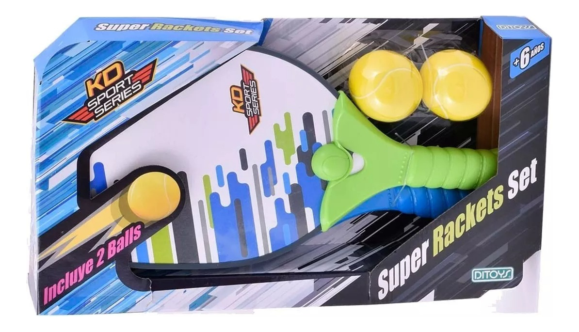 Paleta Playa Ditoys Redonda Con 2 Pelotas Turquesa Para Control Unico