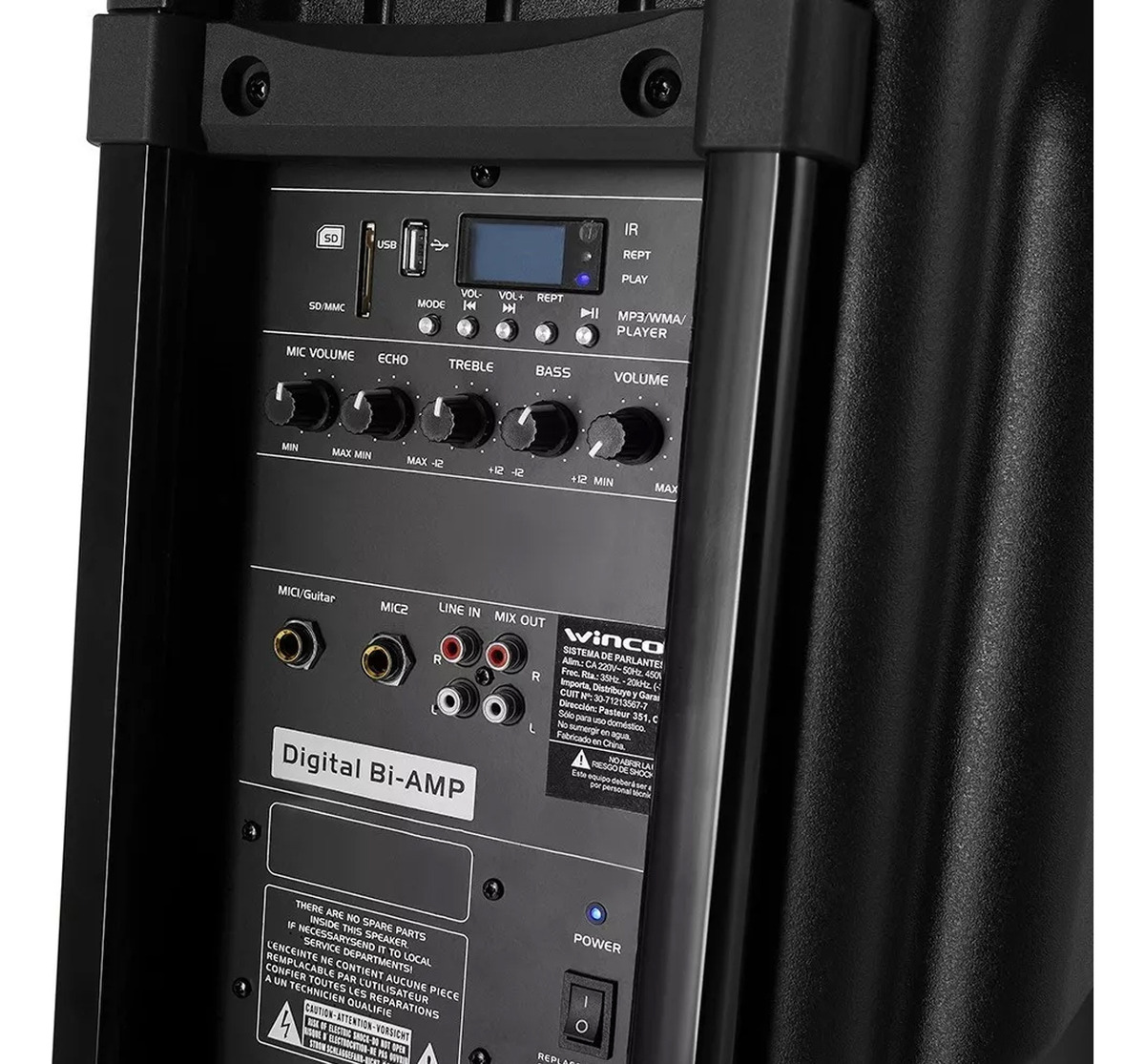 Parlante Activo Winco 450w 2 Mic Woofer Bt Rms 15´´ Usb Sd