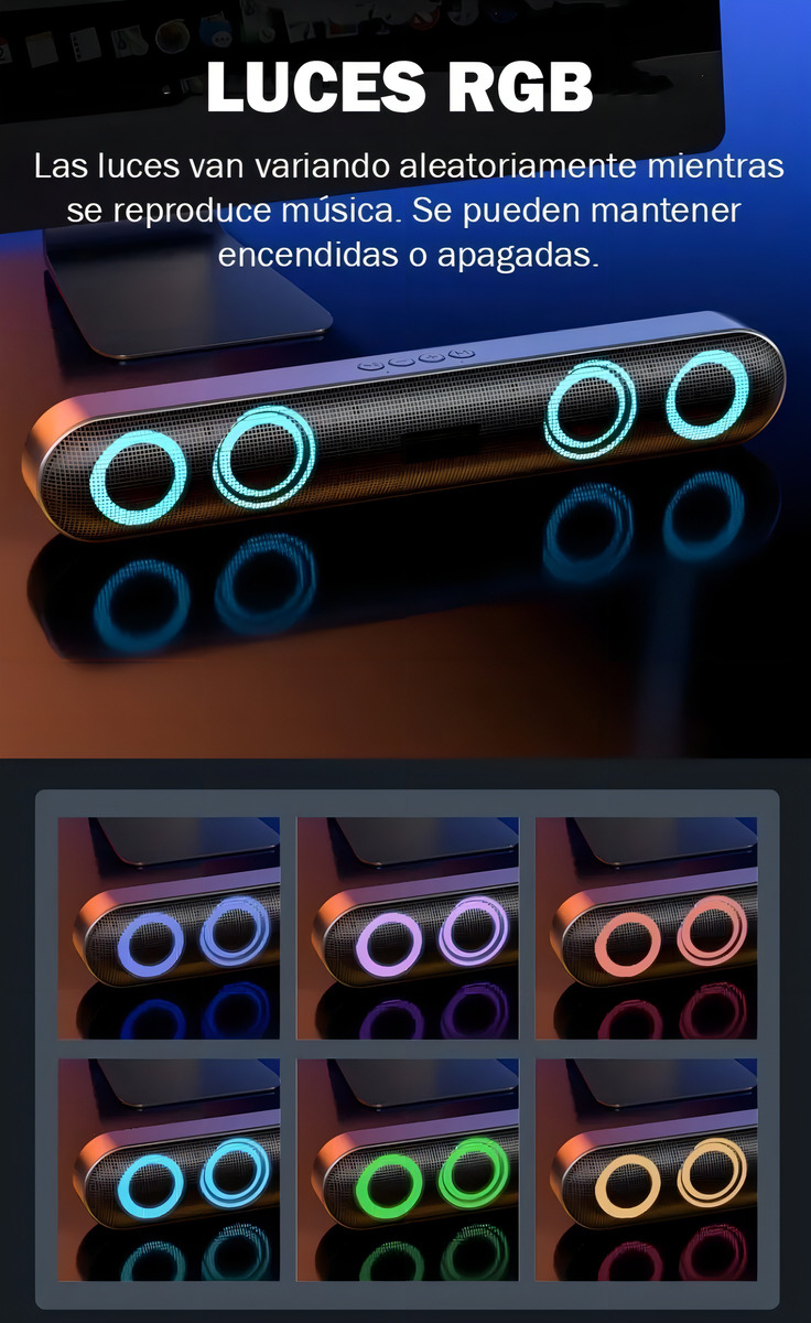 Parlante Barra Sonido Xinua Bluetooth Microfono Luz Rgb 10w Negro