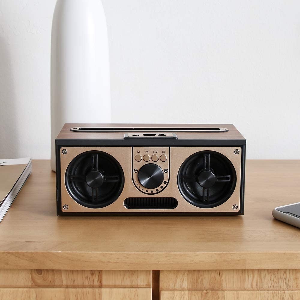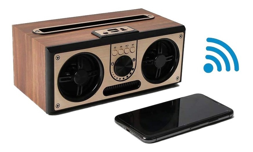 Parlante Portatil Madera Bluetooth Seviz Aux Usb Sd Radio Fm 20w