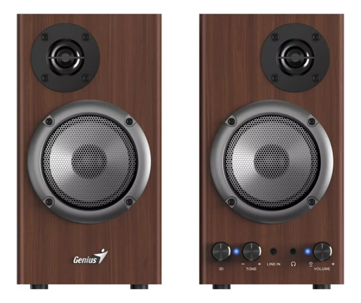 Parlantes Genius 2.0 + 14 Watts Caja Madera Premium Ramos Mejia Marrón Oscuro