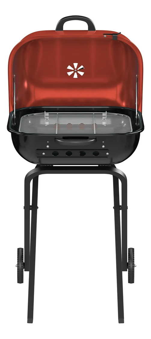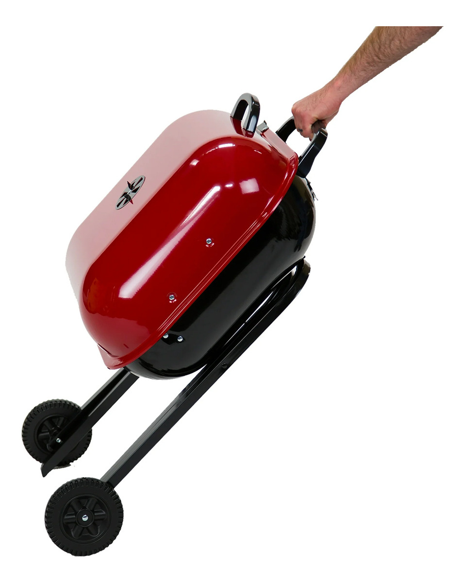 Parrilla Móvil Walkabout Rojo Con Tapa Ruedas Ajustable Carbón Exterior