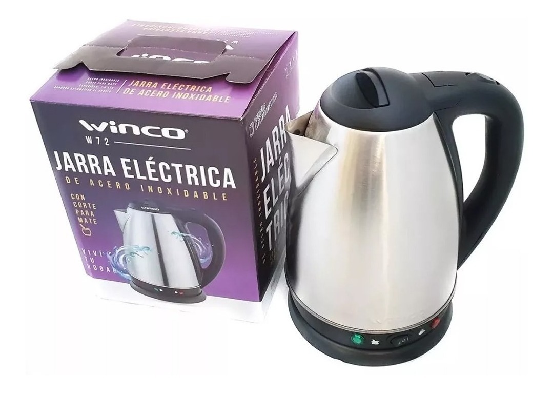 Pava Electrica Jarra Winco 1.8 Lts Corte Ideal Mate Y Cafe Plateado