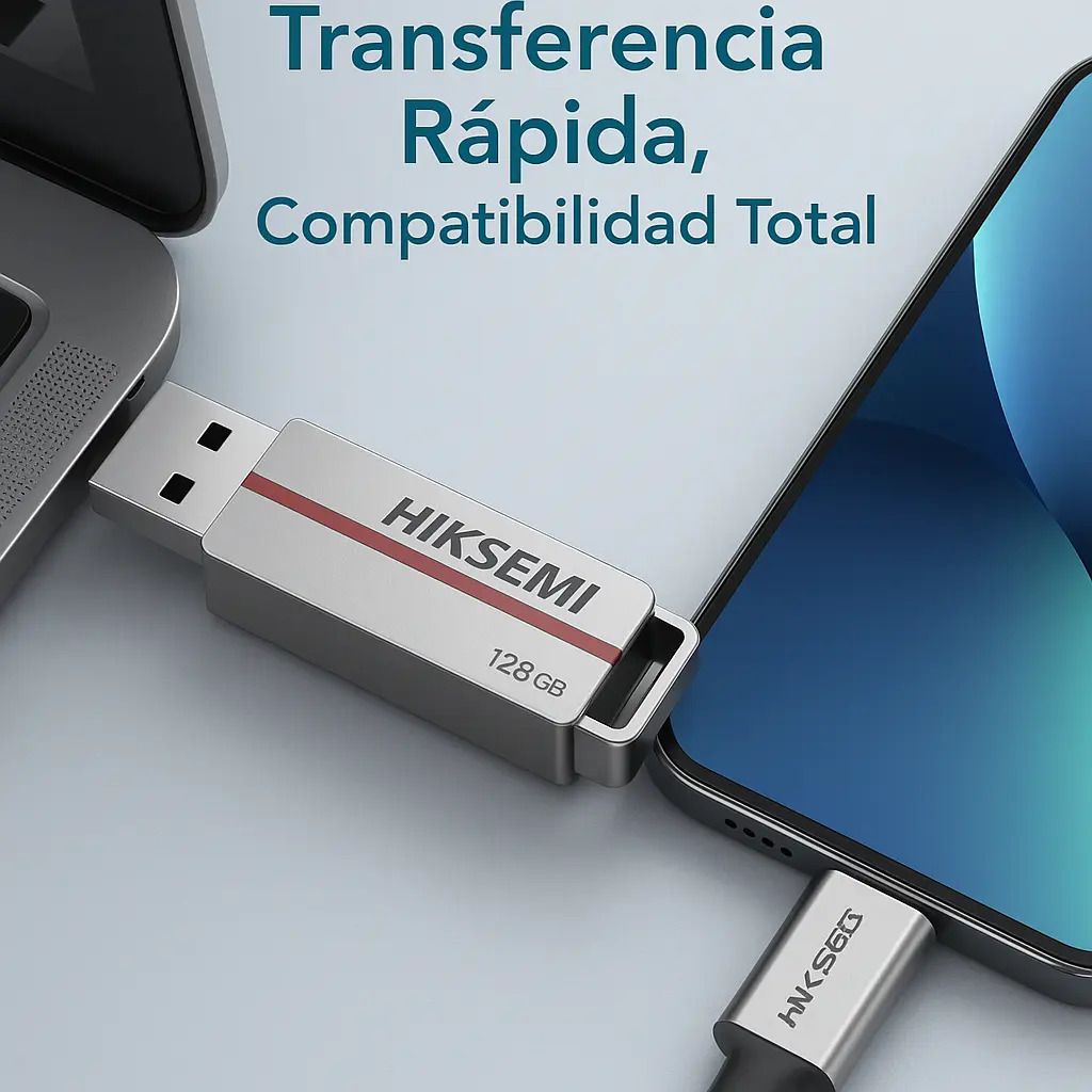 La unidad USB Hiksemi tiene muchas interfaces para que puedas transferir fotos, música y otros documentos entre ordenadores, teléfonos, tabletas y dispositivos inteligentes.